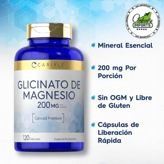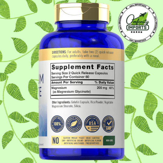 - Alta Absorción: El glicinato es conocido por absorberse más fácilmente que otras formas de magnesio, maximizando sus beneficios.