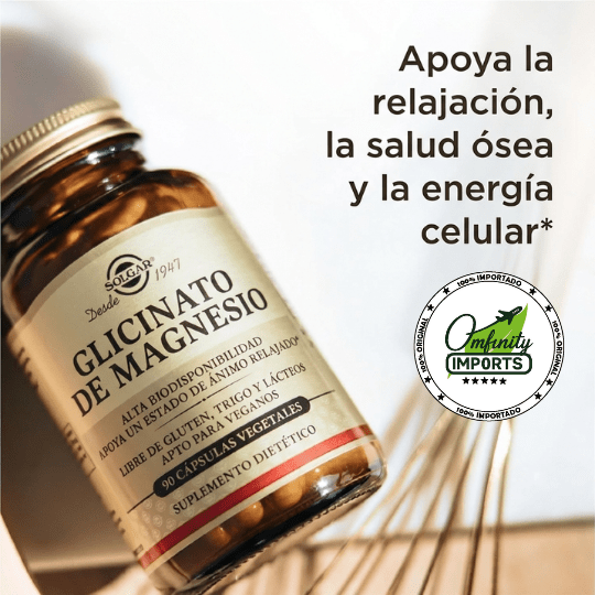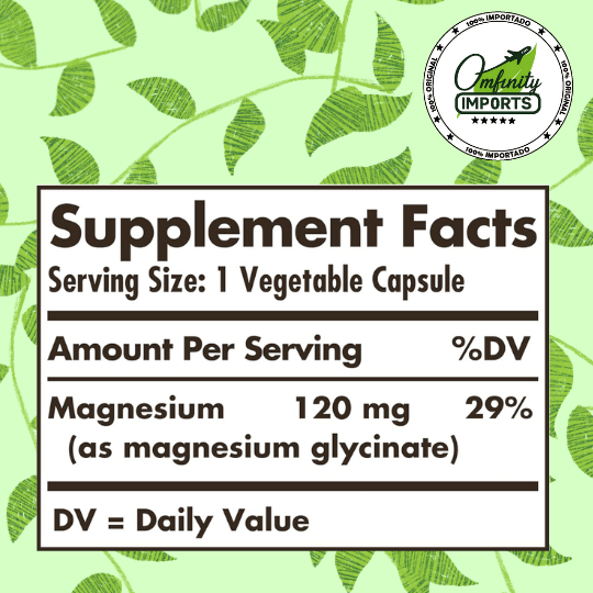 - Magnesio (Glicinato): 120 mg por cápsula.