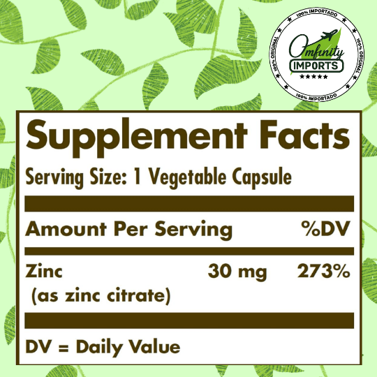 - Zinc (como citrato): 30 mg por cápsula.