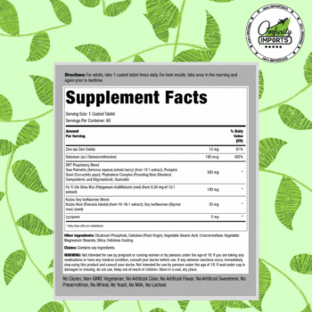 - Fórmula de Soporte: Mezcla específica de Saw Palmetto, Semilla de Calabaza y Fitosteroles.