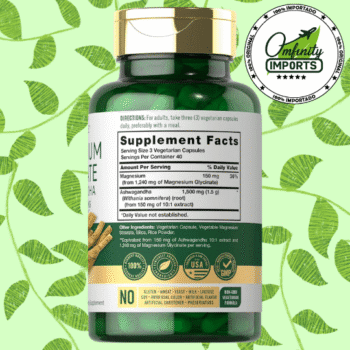 - Sinergia Avanzada: Combina el Glicinato de Magnesio, una forma de alta absorción, con la raíz de Ashwagandha para un soporte integral.