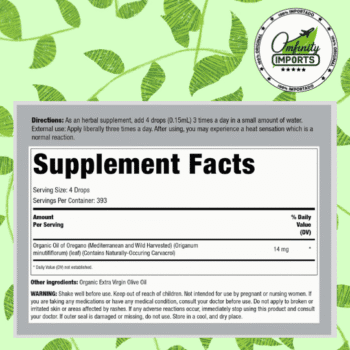 - Certificado Orgánico: Aceite de orégano con sello USDA Organic, garantizando pureza y ausencia de pesticidas.