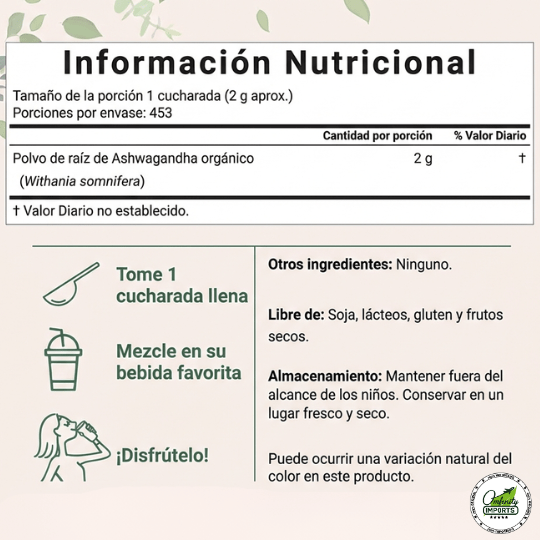 2g de Ashwagandha por porción (1 cucharada).