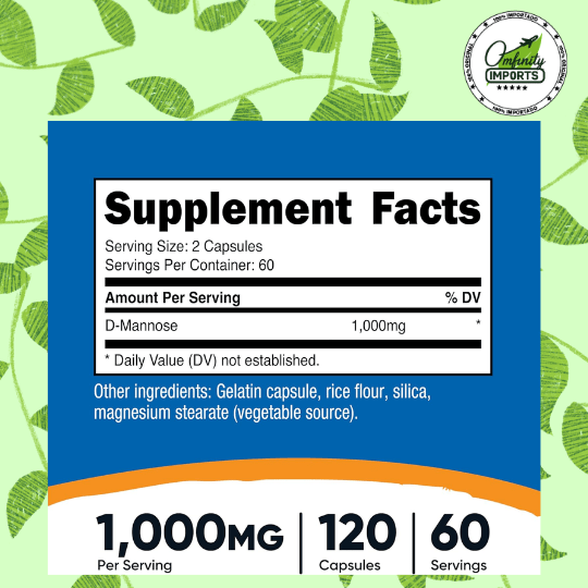 - Soporte Urinario Natural: La D-Manosa es un azúcar simple que ocurre naturalmente en el cuerpo y en algunas plantas, utilizado específicamente para mantener la salud de la vejiga.