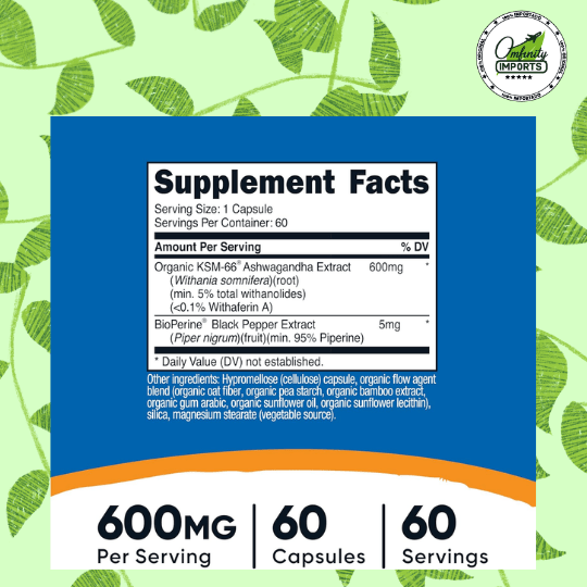 - Alta Potencia: Cada cápsula aporta 600 mg de KSM-66®, la dosis estándar utilizada en la mayoría de los estudios científicos para obtener resultados reales.