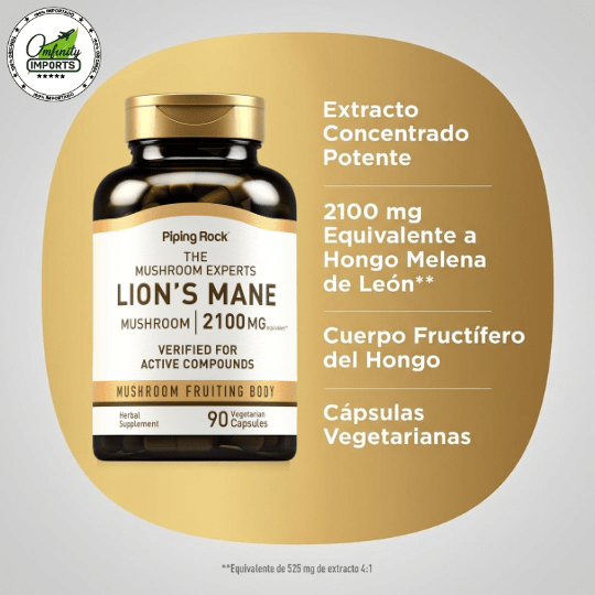 - Concentración: Equivalente a 2100 mg de Melena de León por cápsula.