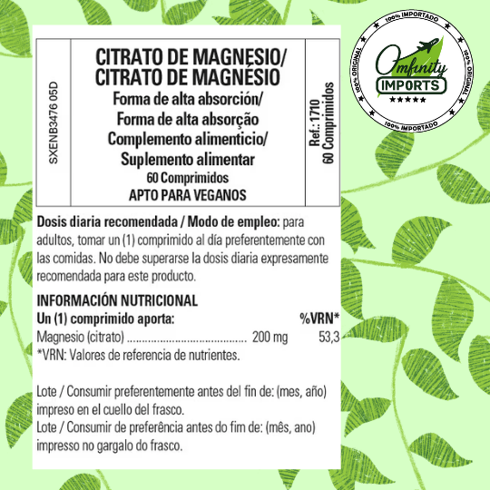 - Alta Absorción: Utiliza la forma de citrato, que es significativamente más fácil de absorber para el cuerpo que el óxido de magnesio.