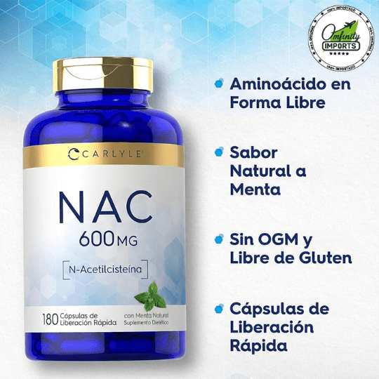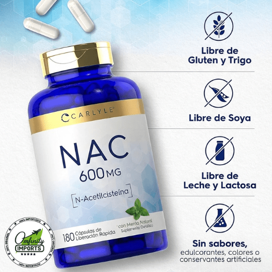 🗸NAC 600mg te ofrece el poder de un antioxidante superior y un apoyo clave para tu salud pulmonar en una práctica cápsula.