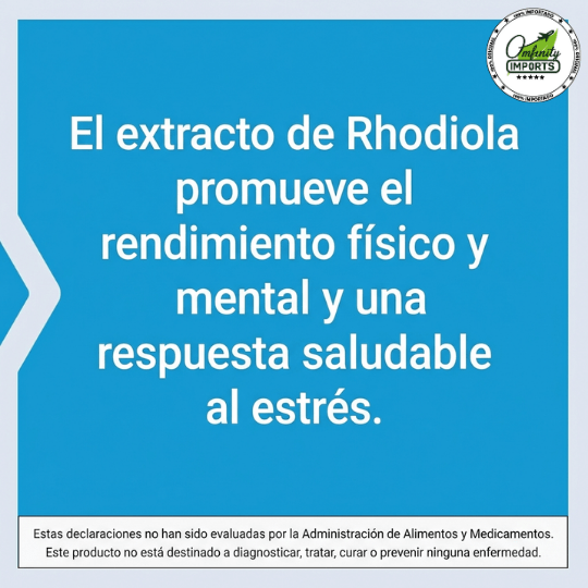 Extracto de Rhodiola (raíz) 250 mg (estandarizado a 5% de rosavinas y 1.5% de salidrósidos).