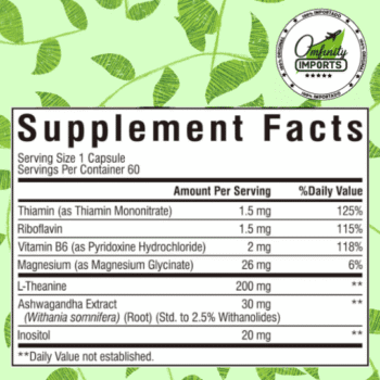 - Sinergia Relajante: Combina un aminoácido clave (L-Teanina) con uno de los adaptógenos más potentes (Ashwagandha) para un efecto calmante sin causar somnolencia.