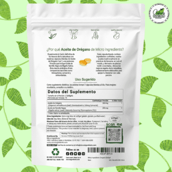 - Certificado Orgánico: Aceite de orégano con sello USDA Organic, garantizando pureza y ausencia de pesticidas.